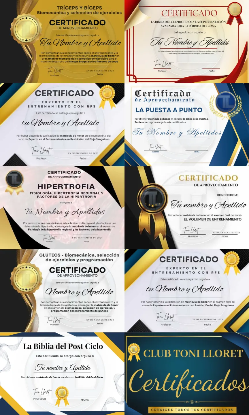 - Accederás a ejemplos reales de preparaciones de mis atletas en volumen, definición y recomposición, para que entiendas cómo se aplican todos estos principios en la vida real y cómo deben evolucionar peso y perímetros en cada fase.